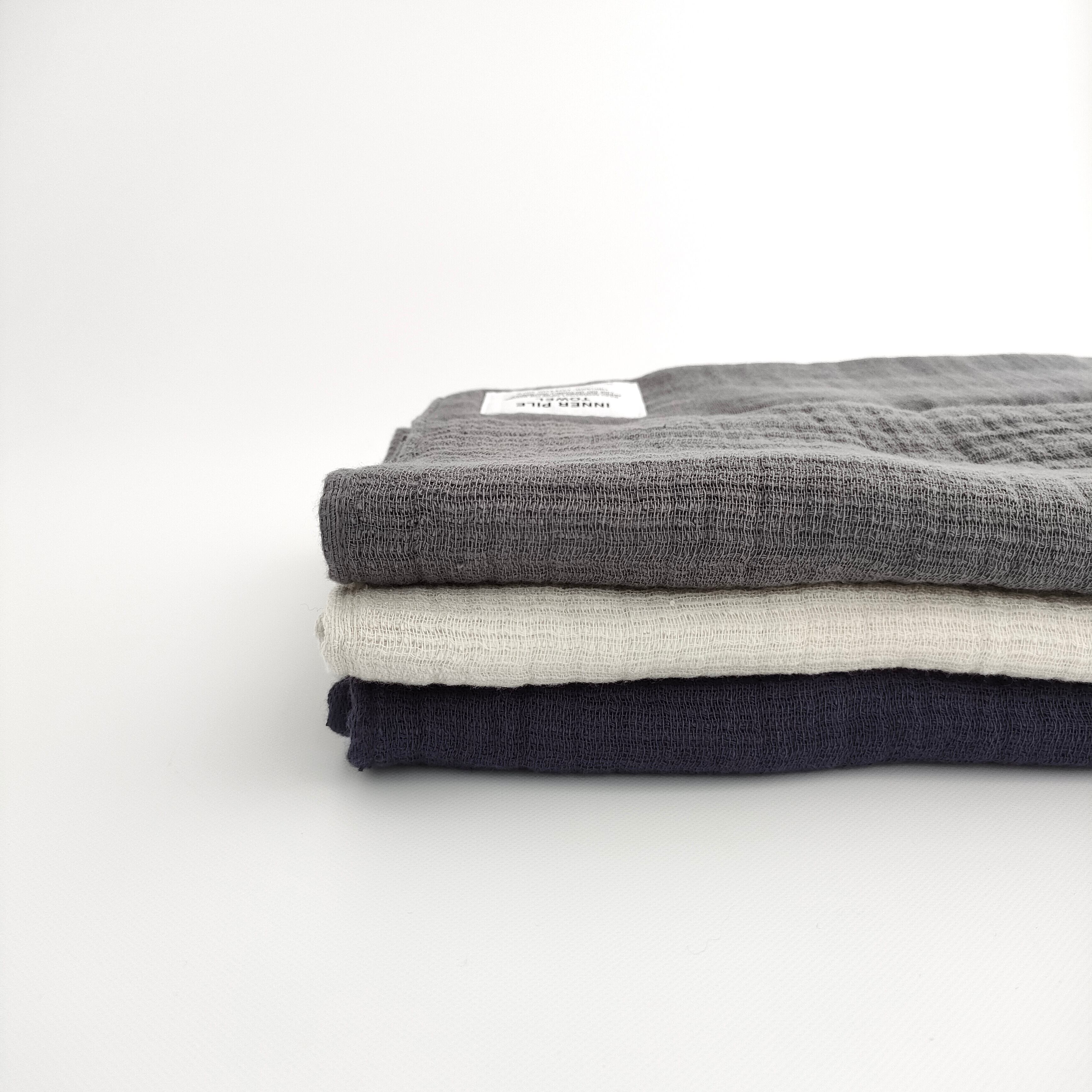 表面のガーゼによる優しい肌触りと、中のパイルが持つ高い吸水性が特徴です。